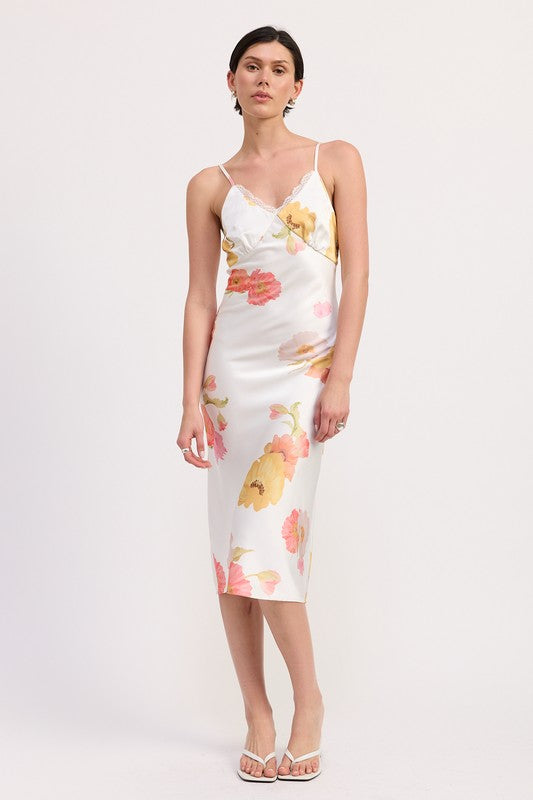 MIDI SPAGHETTI STRAP DRESS WITH LACE DETAIL