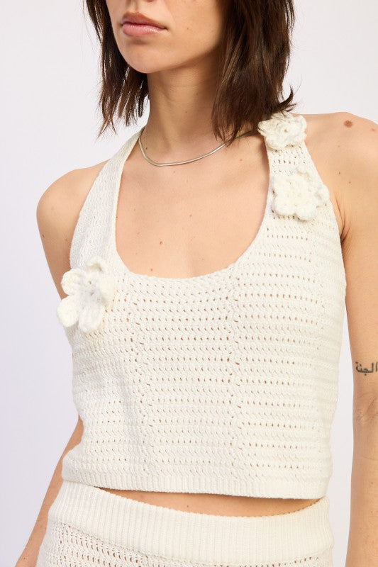 SQUARED NECK TANK TOP WITH EMBROIDERY