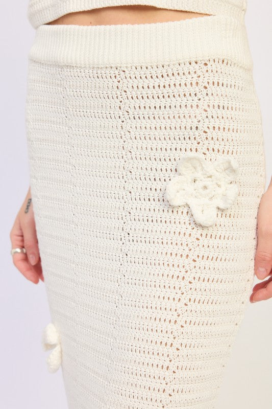 CROCHET FLOWER APPLIQUE MAXI SKIRT