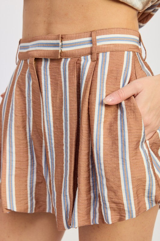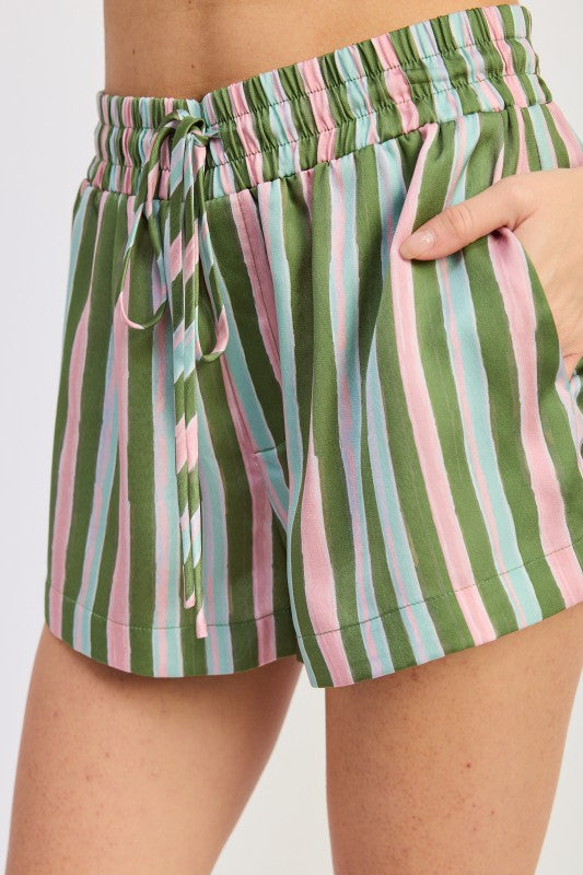 SATIN STRIPED SHORTS WITH ELASTIC WAIST