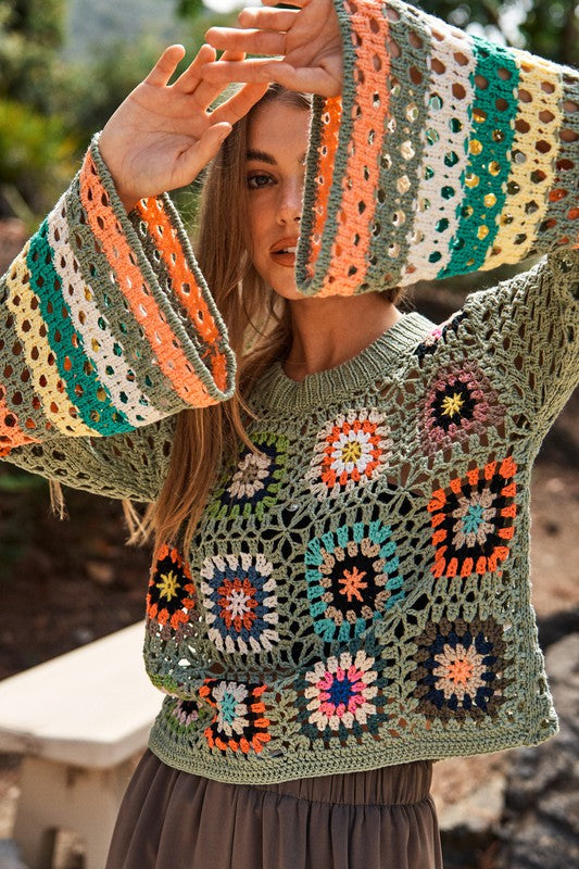 LONG SLEEVE FRONT TIE CROCHET TOP