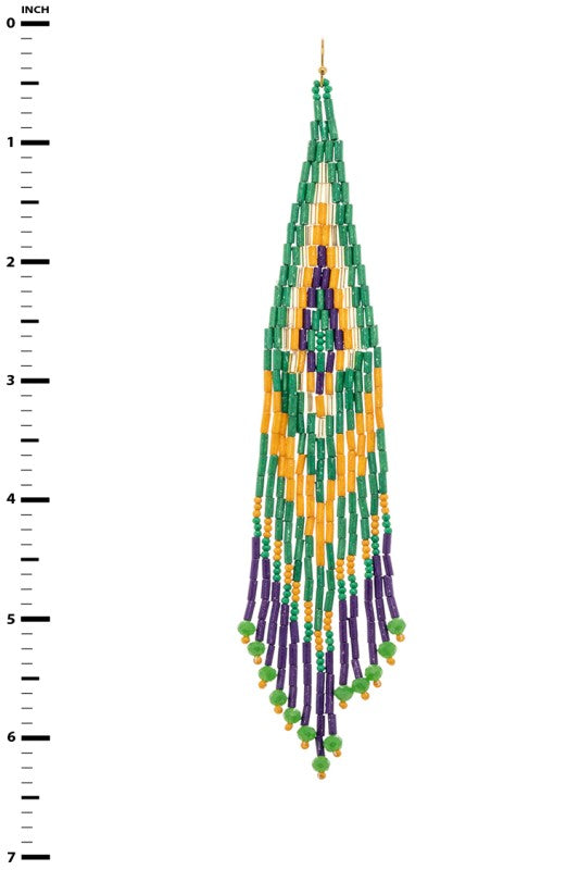 Mardi Gras Seed Beads Fringe Earrings