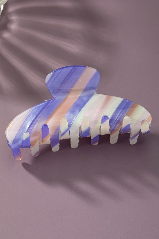 Large colorful striped acetate hair claw clip
