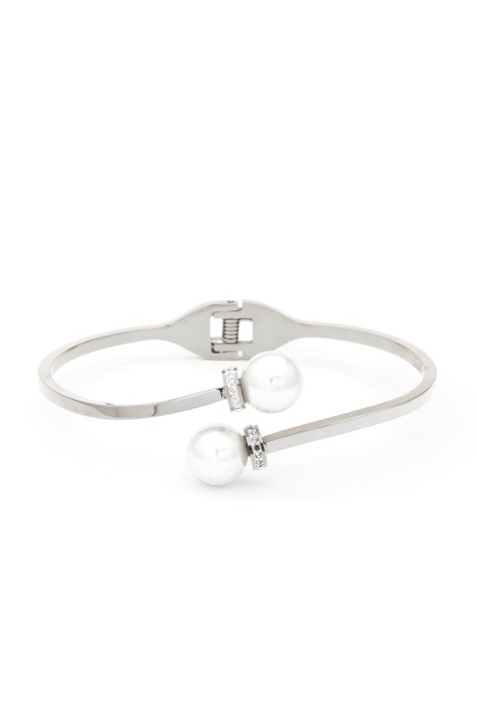 Double Pearl Tip Stainless Steel Open Bangle