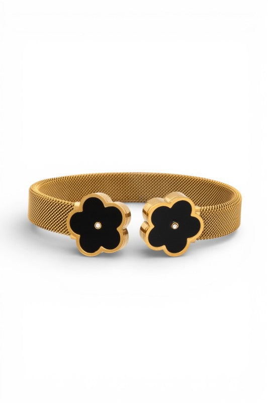 Double Flower Stainless Steel Mesh Cuff Bracelet