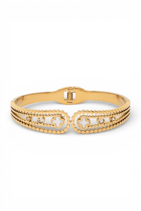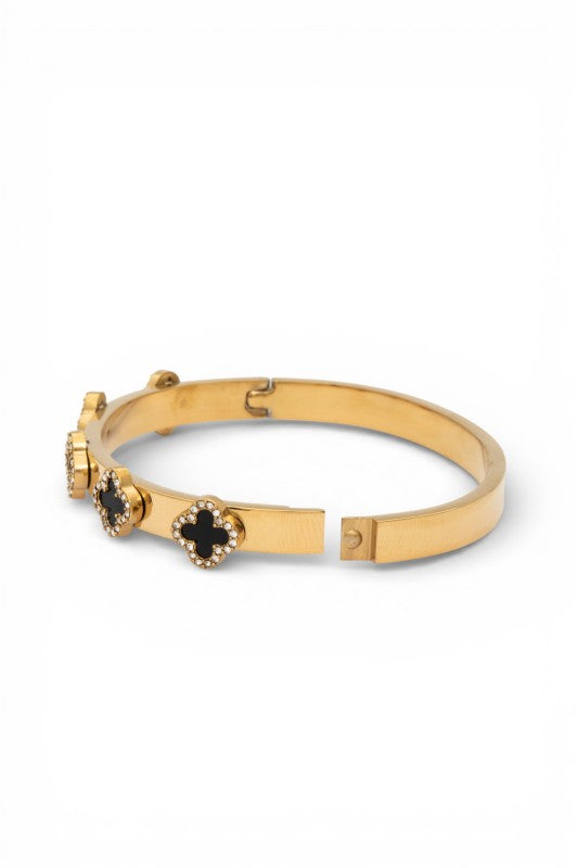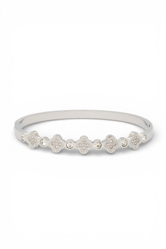 Rhinestone Clover Iconic Stainless Steel Bangle