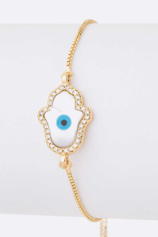 MOP Hamsa CZ Bolo Bracelet