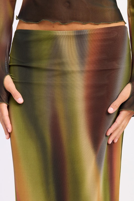 PRINTED MESH MAXI SKIRT