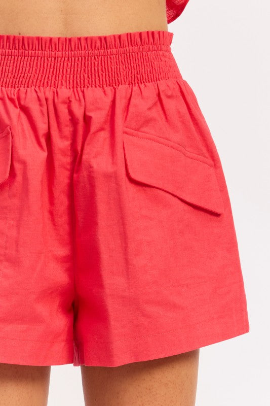 FLAP SMOCKED WAIST SHORTS