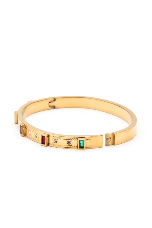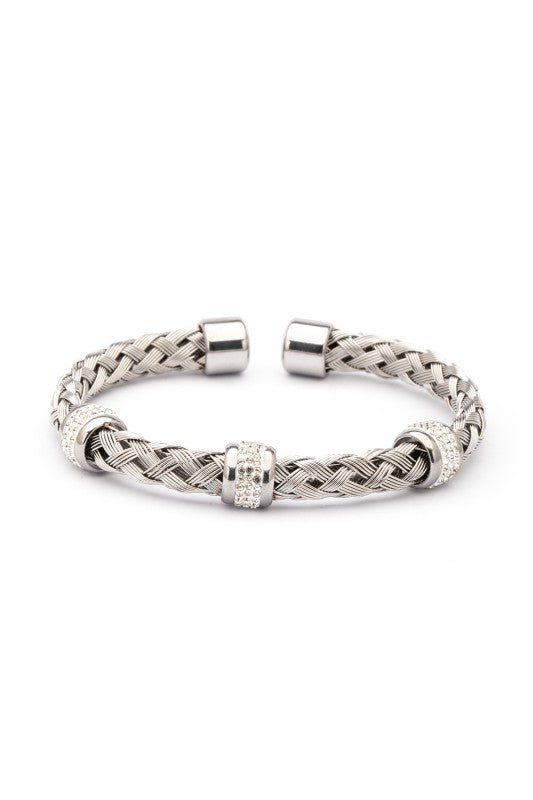 Rhinestone Cable Wrap Stainless Steel Bangle