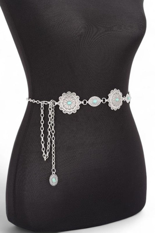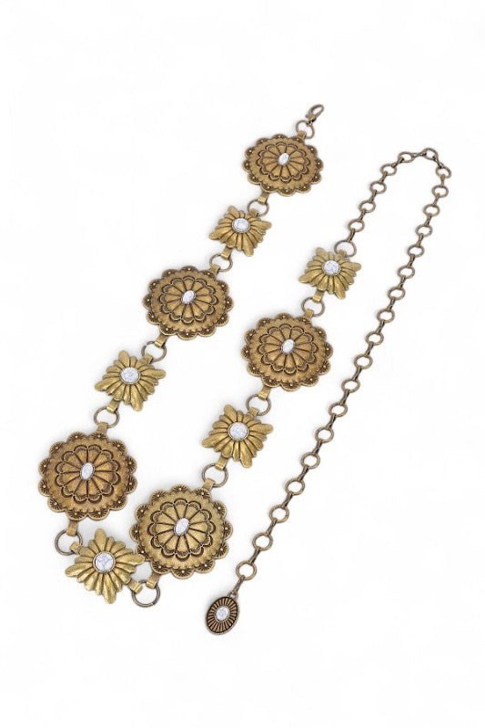 Faux Stone Western Concho Chain Belt