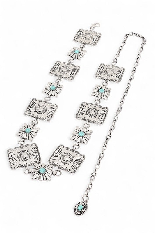 Western Turquoise Concho Station Chain Belt