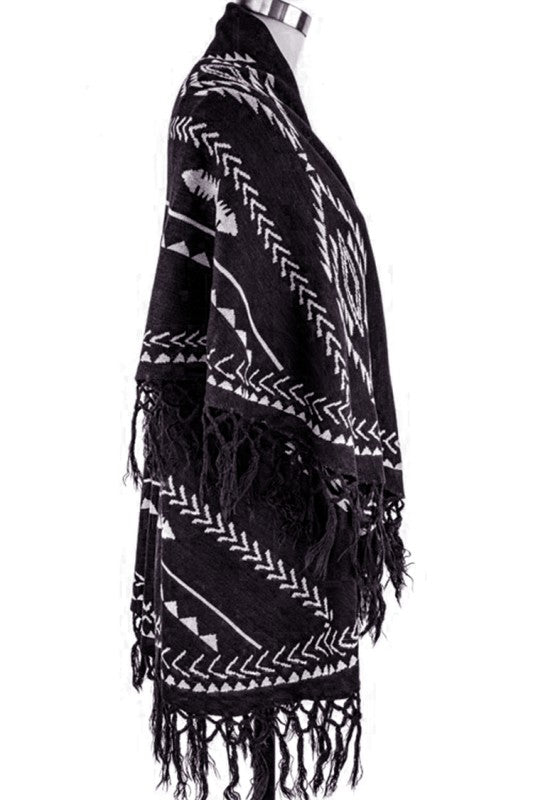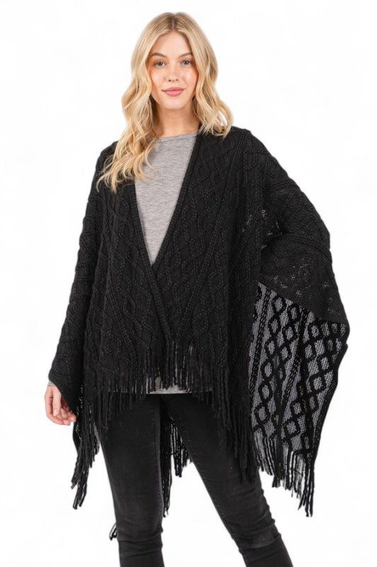 Fringe Tassel Diamond Ruana Knit Ruana Cardigan