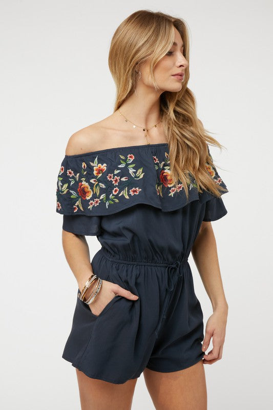 BUBBLE SLEEVE FLORAL ROMPER WITH CUT OUT