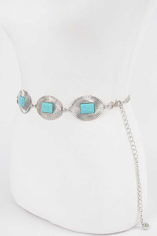 Turquoise Concho Boho Chain Belt