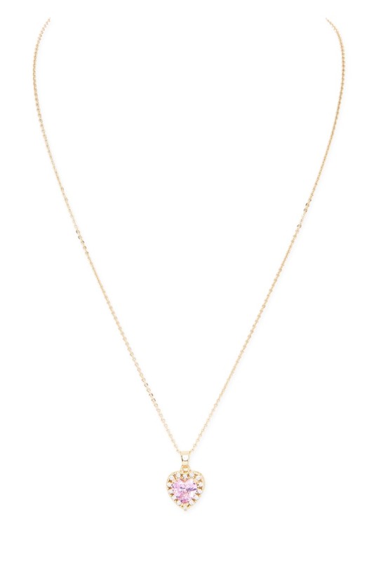 Cubic Zirconia Pink Heart Pendant Necklace