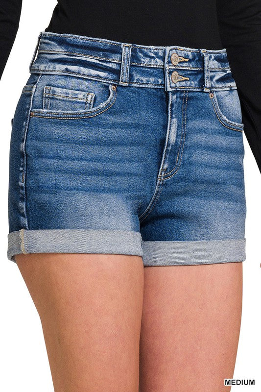 MID-RISE PREMIUM DISTRESSED SHORTS
