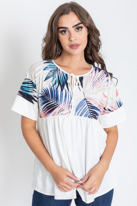 Tropical Keyhole Tie Front Tunic