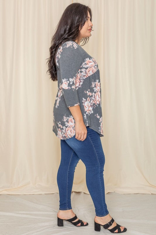 Plus Floral Curved Hem Tunic