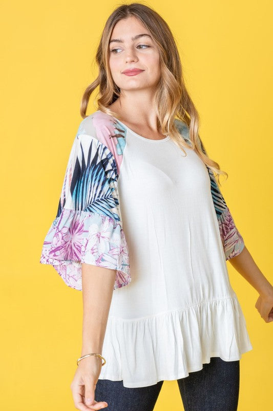 Plus Mix Pattern Circular Flounce Sleeve Tunic