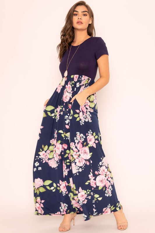 Plus Short Sleeve Floral Maxi Dress