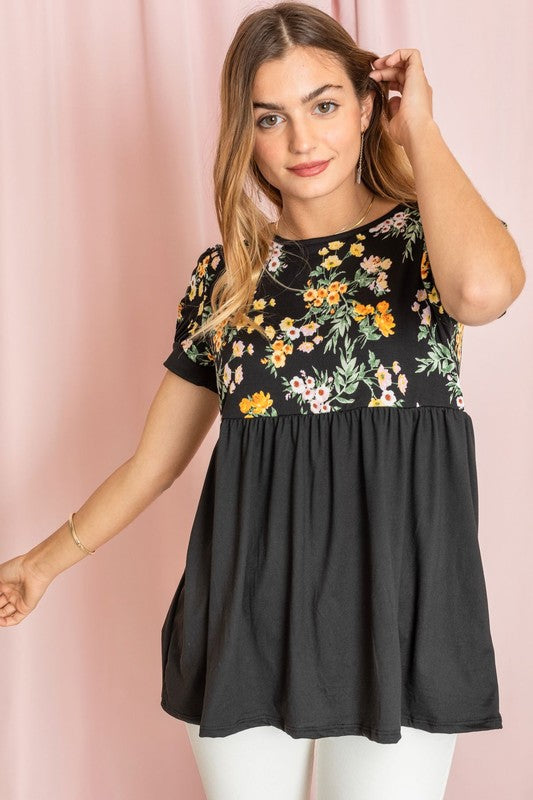 Plus Baby Doll Floral Puff Sleeve Tunic