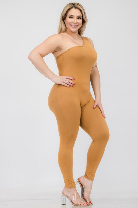 PLUS SLEEVELESS ADJUSTABLE STRAP BUTTON JUMPSUIT