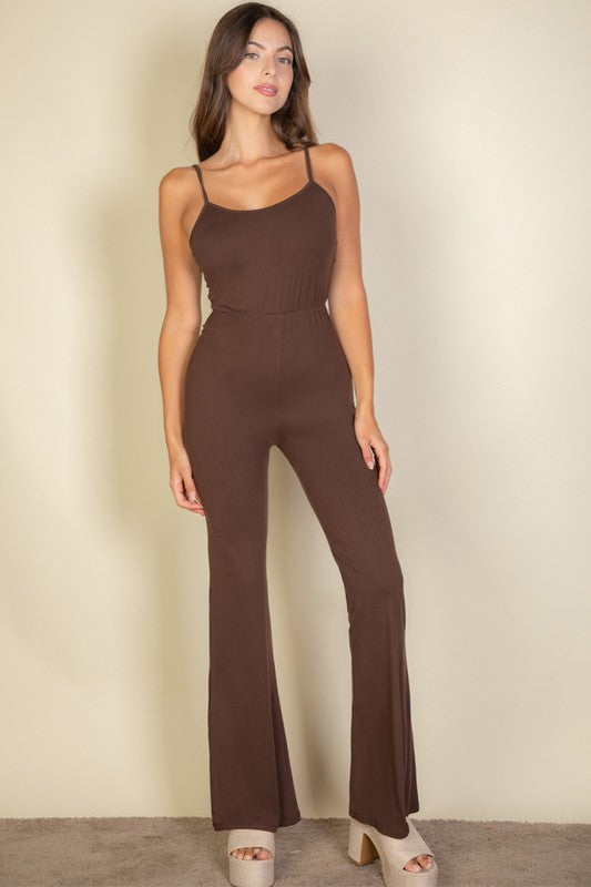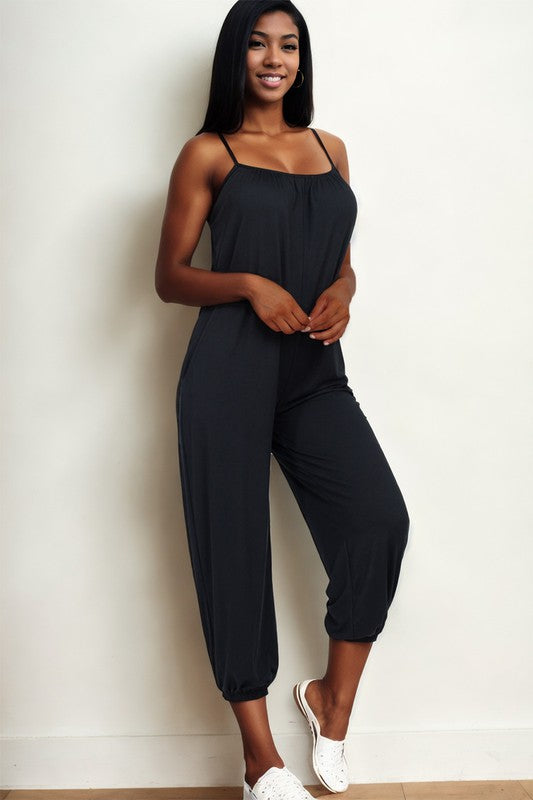 Solid Ribbed Slit Neckline Sleeveless Romper
