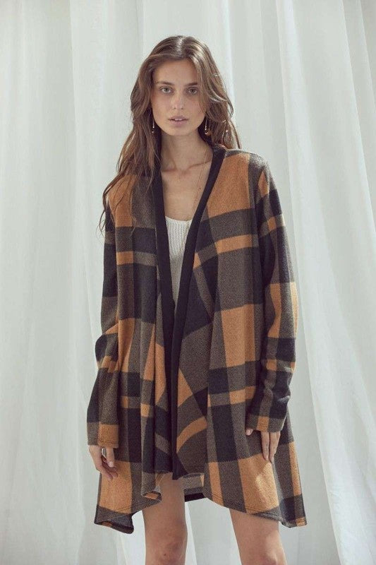 BLOCK CHECK OPEN KNIT CARDIGAN