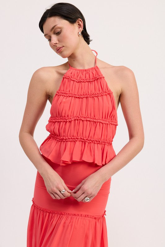 SPAGHETTI STRAP TOP WITH SCARF AND BACK ZIPPER