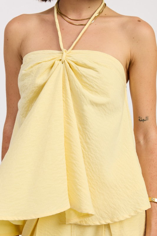 TIE BACK HALTER TOP WITH RUFFLE DETAIL