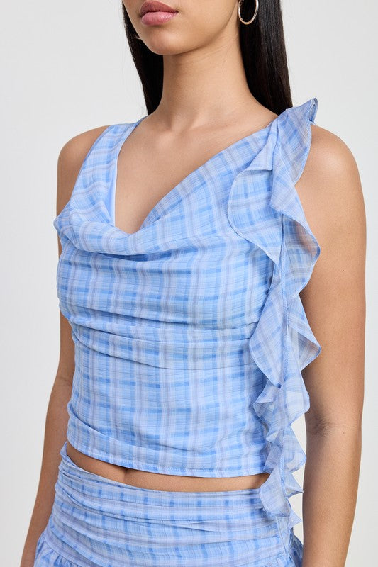 GINGHAM RUFFLE SLEEVE CORSET TOP