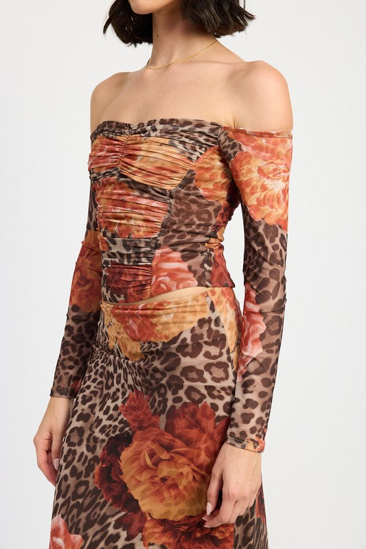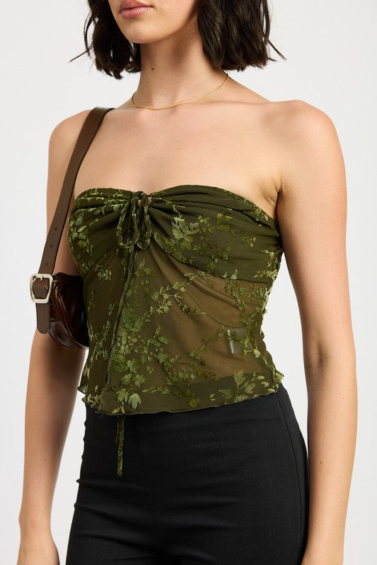 MESH PRINT TUBE TOP WITH DETACHABLE SHRUG