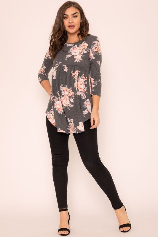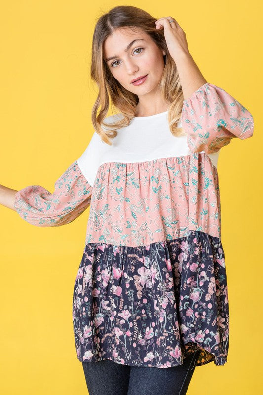 Three Tiered Bishop Sleeve Paisley Floral Tunic