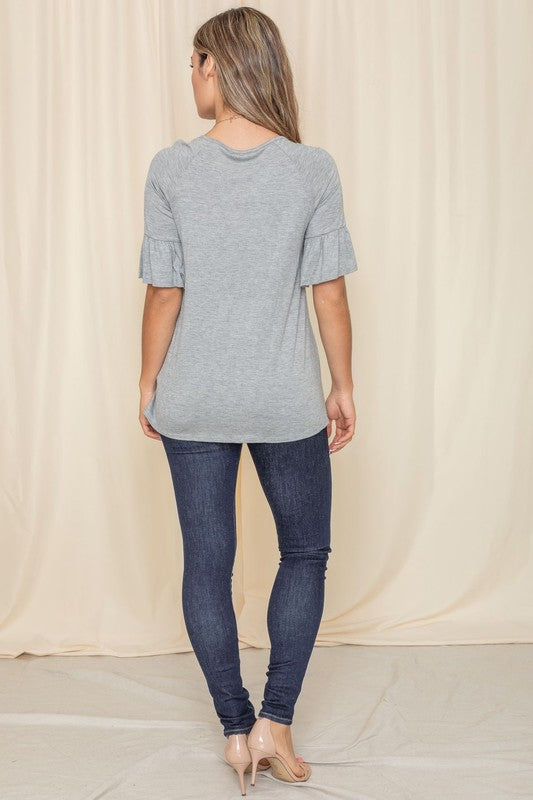 Shirred V Neck Ruffle Sleeve Baby Doll Tunic