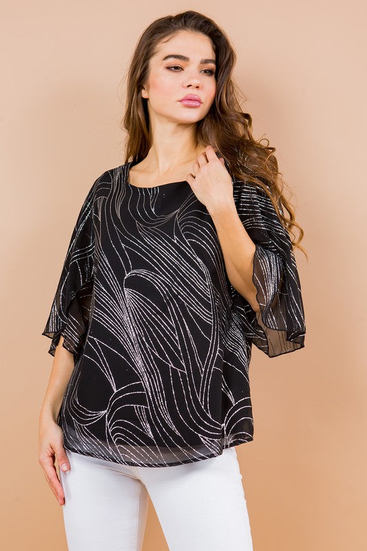 Glittered Print Woven Blouse