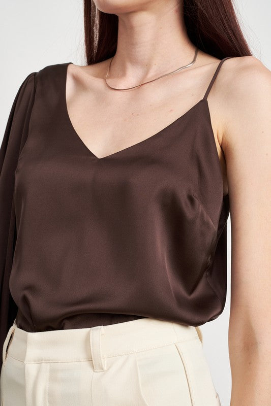 ONE SHOULDER BLOUSE WITH SPAGHETTI STRAP