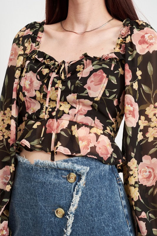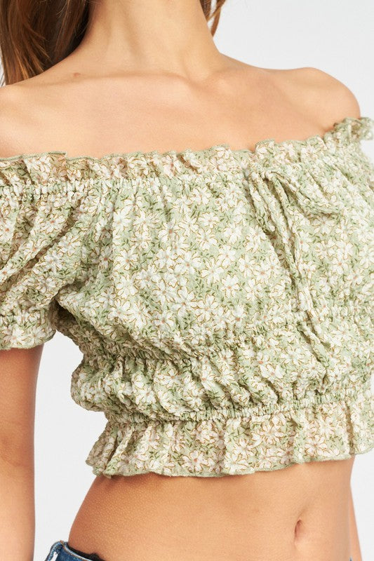 FLORAL PRINT PUFF SLEEVE CROP TOP
