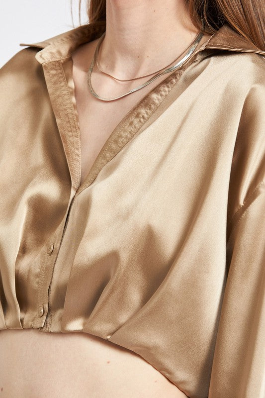 PUFF SLEEVE CROP TOP WITH RUCHED DETAIL