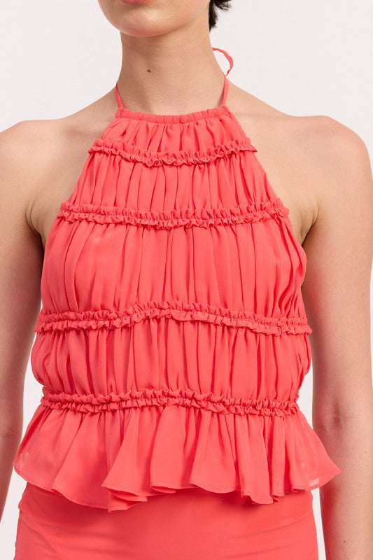 SMOCKED SLEEVELESS TOP WITH OPEN BACK