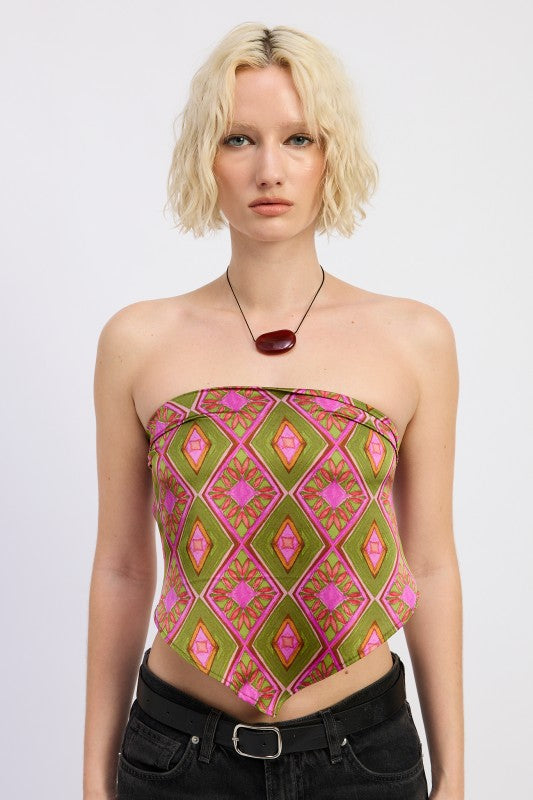 FITTED STRAPLESS STRIPE TOP WITH SIDE TIE ACCENT