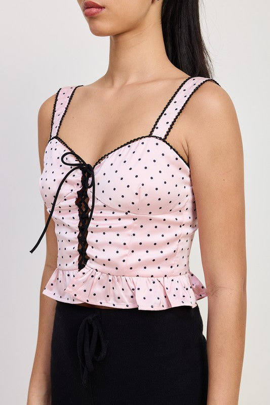 SQAURED NECK POLKA DOT BUBBLE SLEEVE TOP