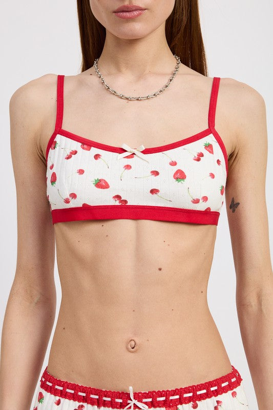 RUCHED FLORAL TOP WITH BOW DETAIL
