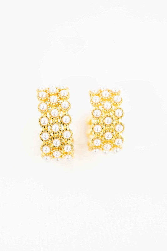 Pearl Lattice Hoop Earrings