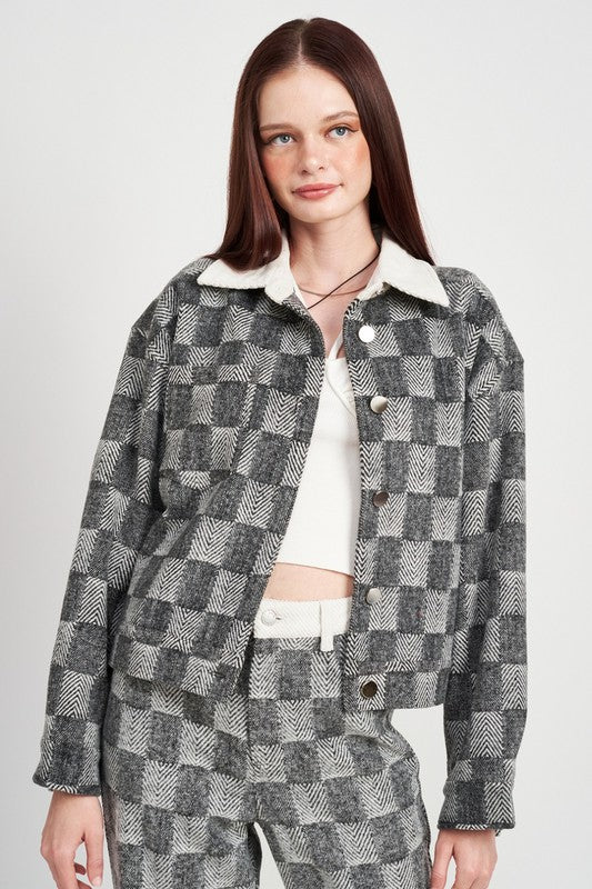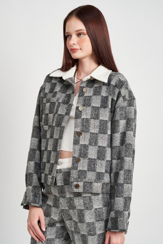 PLAID CONTRASTED JACKET