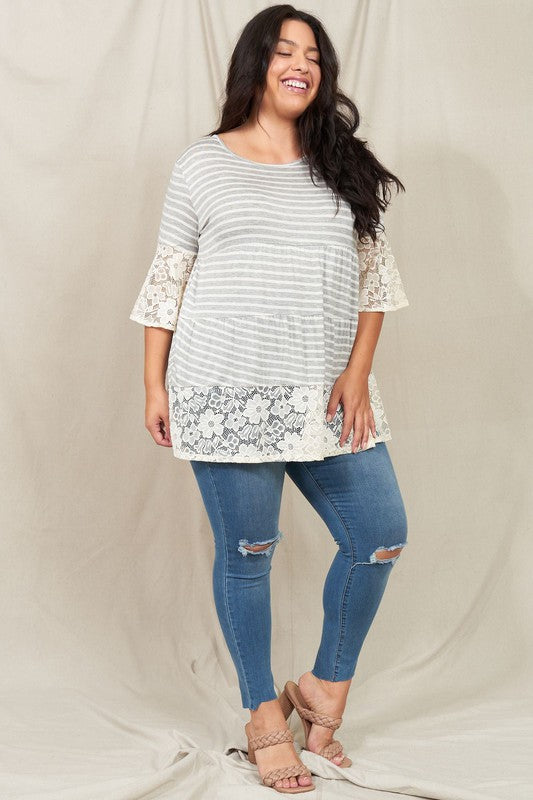 Plus Lace Trim Tiered Tunic