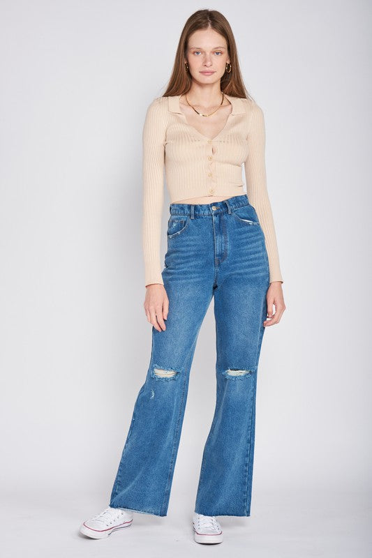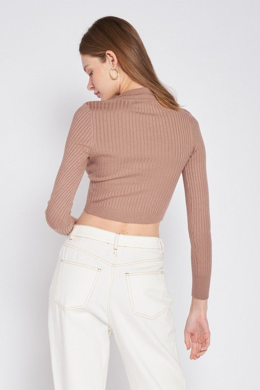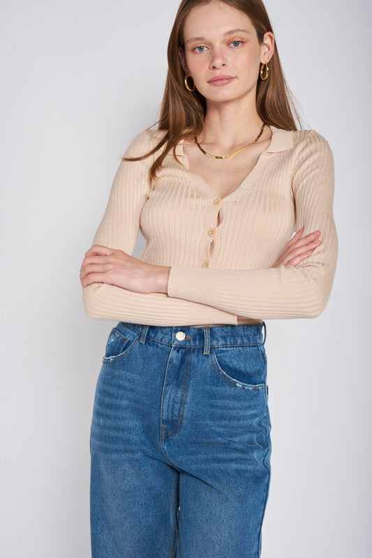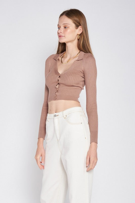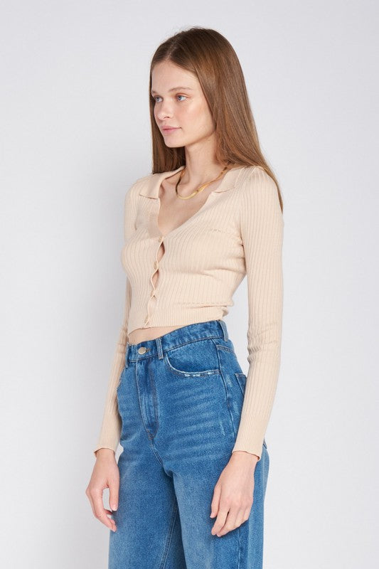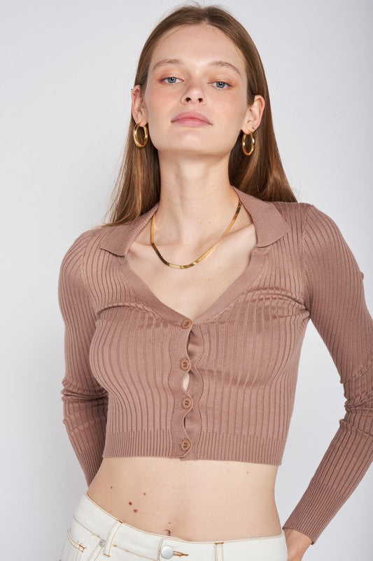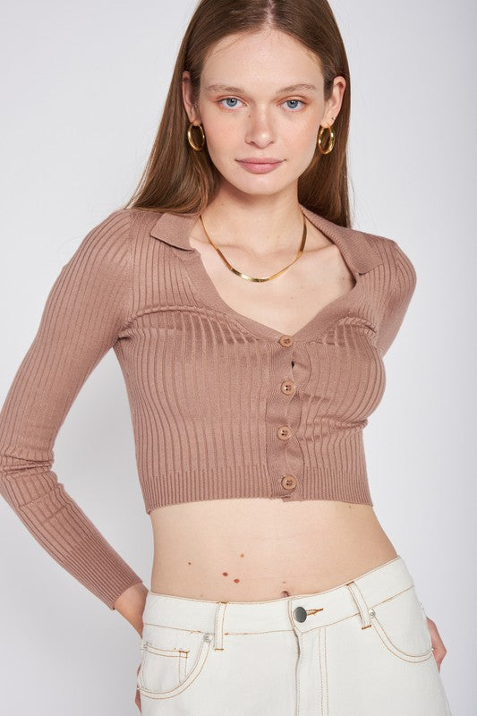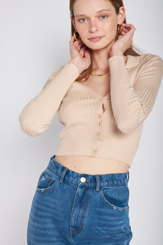 RIBBED BUTTON DOWN CROP CARDIGAN