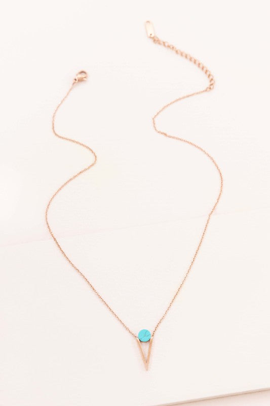 A touch of edge and marble for a modern take on a charm necklace. Ensemble this necklace with your favorite v-neck t-shirt.
