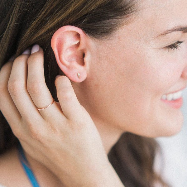 Tiny stud earrings in the shape of a tusk. The perfect, just barely there, everyday earring in a fun shape. Butterfly closure.