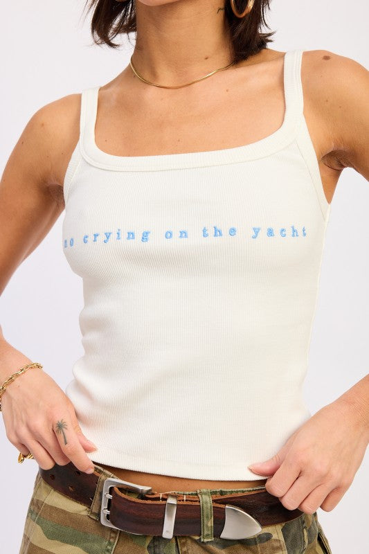 SQUARED NECK TANK TOP WITH EMBROIDERY